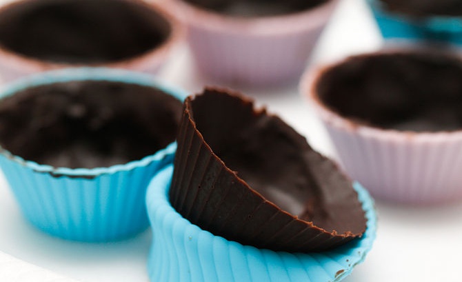 Con estos moldes de papel es muy sencillo. Solo debes vaciar una buena cantidad de chocolate fundido en cada capacillo y posteriormente regresar el chocolate al molde, sacudiendo con fuerza. Vuelve a poner boca arriba en una bandeja y lleva a la nevera durante unos minutos
