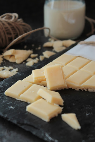 Si no queréis tomar ningún tipo de lácteo bien porque sois veganos o bien porque sois alérgicos a la proteína de la leche de vaca, podéis hacer vuestro propio chocolate blanco vegano, sin leche. Usando la leche de soja en polvo, que como he dicho podéis encontrar en herboristerías.