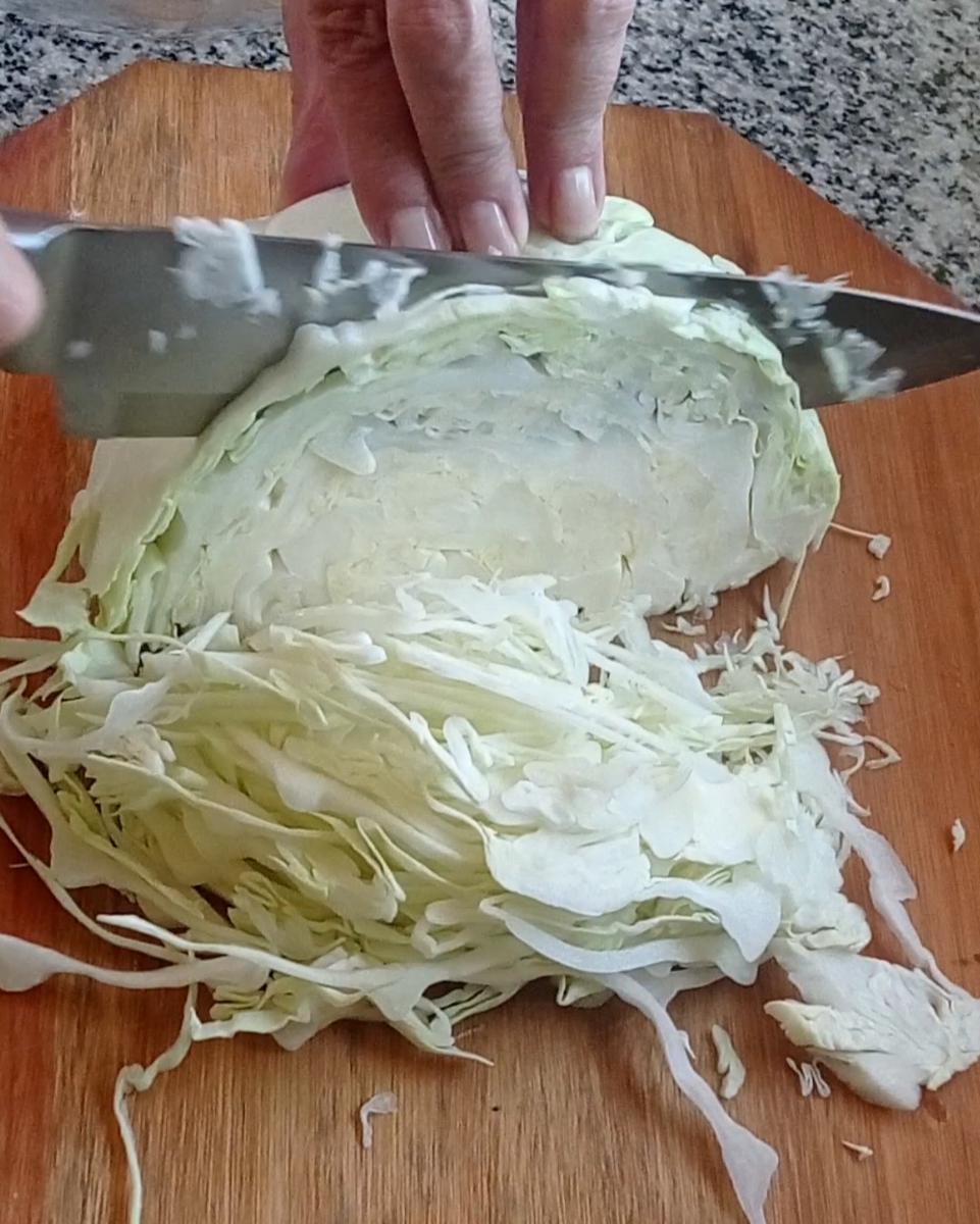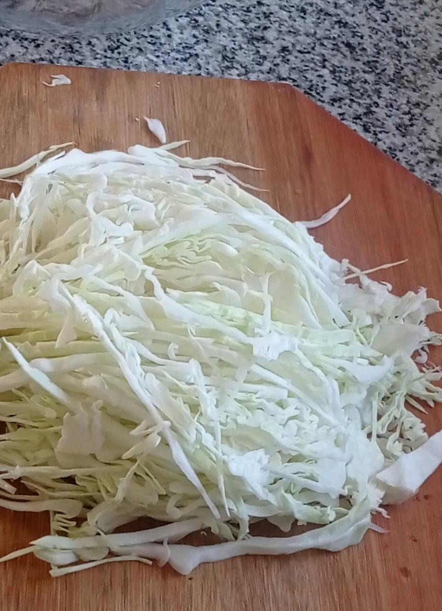 Se corta al medio o en cuartos y se retira el tronco central y se pesa, luego se corta en tiras finas