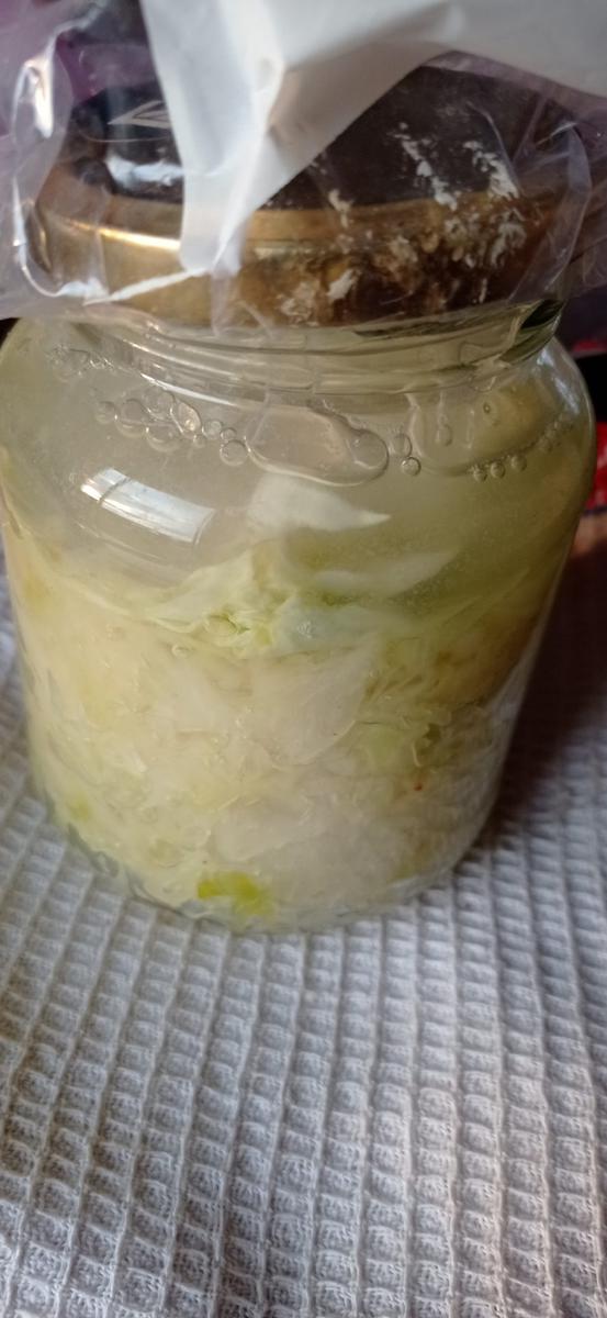 Si no está cubierto de agua , se forman hongos, por eso se le pone un peso o se cubre con las mismas hojas de repollo.