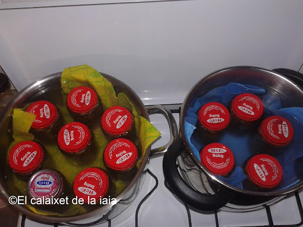 y dejamos hervir unos 20 minutos. Una vez terminado éste tiempo, dejaremos enfriar en la cazuela. Es MUY importe comprobar que el vacía está bien hecho. Cuando el bote esté completamnte frío, haremos un poco de presión en la tapa, si oimos un sonido como de un clik, es que el vacío no está bien hecho, tendremos que consumirlo en un par de semanas guardándolo en el frigo. Si no oímos un clik y no podemos abrirlo es que el proceso se ha realizado con éxito.