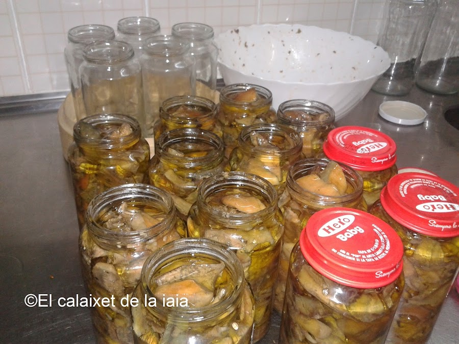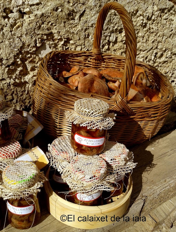 es por eso que os aconsejo etiquetar cada bote con la fecha del envase y podremos disponer de rebollones o níscalos para realizar nuestras recetas con carnes,estofados arroces......