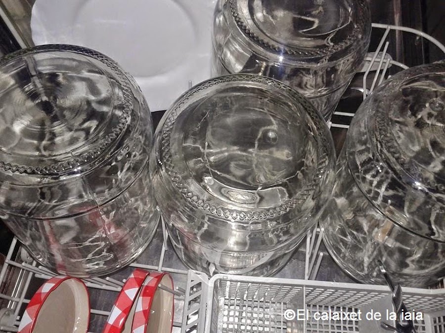 Es MUY importante esterilizar los botes de cristal y las tapas, para ello, los pondremos a hervir en agua, o los pasaremos por el lavavajillas al máximo de grados que nos permita nuestra máquina.