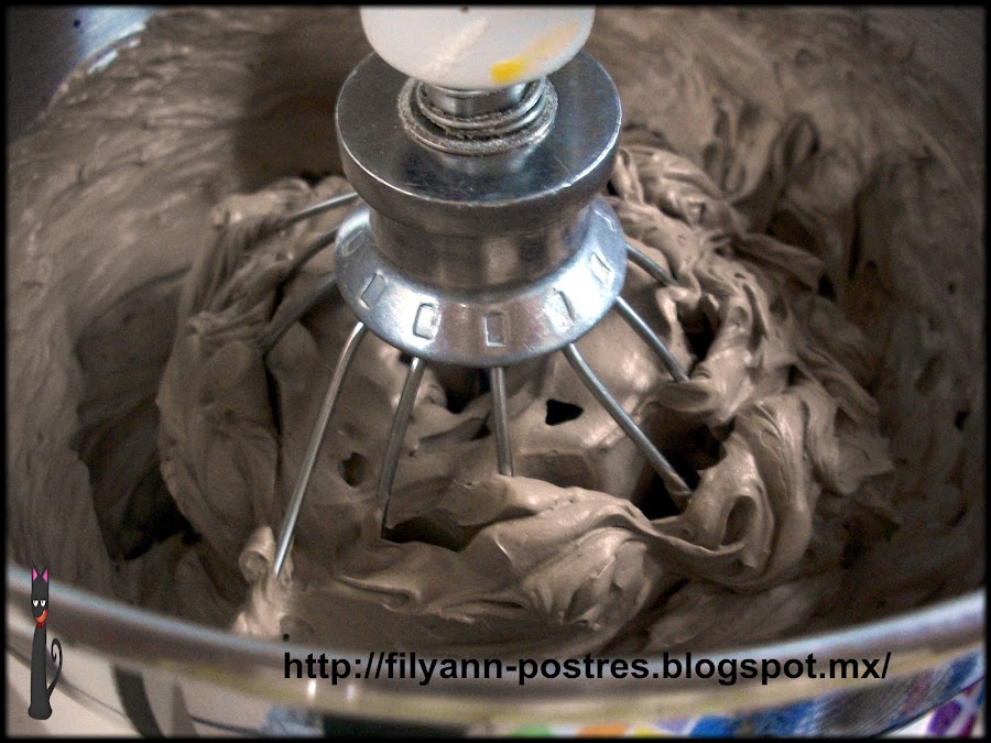 4.- Batir la crema hasta que forme picos suaves cuidando de no sobre batirla, si no la crema se nos va a cortar.