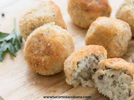 Después de hervir el pescado, saca las espinas y pasa la masa por la maquina de moler o desmenuzar bien la masa a manoSofríe ligeramente la cebolla en la grasa caliente