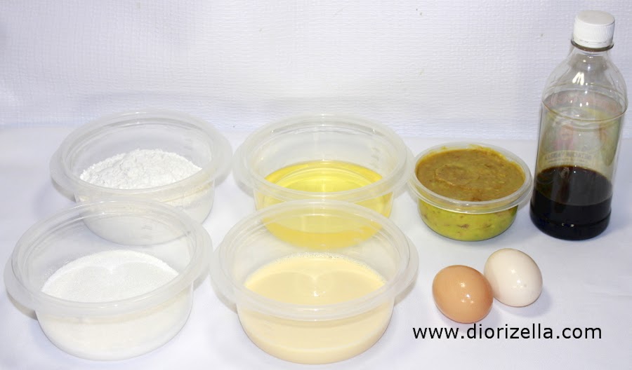 Los ingredientes que vas a necesitar son: harina, aceite, aguacate maduro majado, extracto de vainilla, azúcar, leche y huevos.