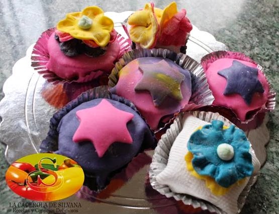 Desmolda y espera a que estén frios para decorar, el día de hoy los decore con fondant haciendo figuras de flores y estrellas.