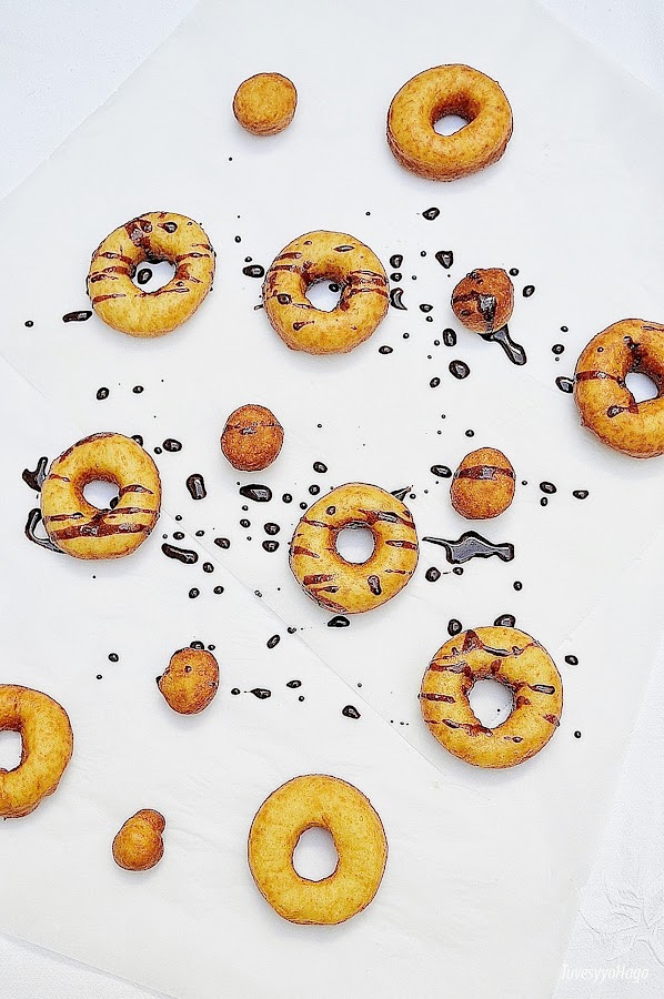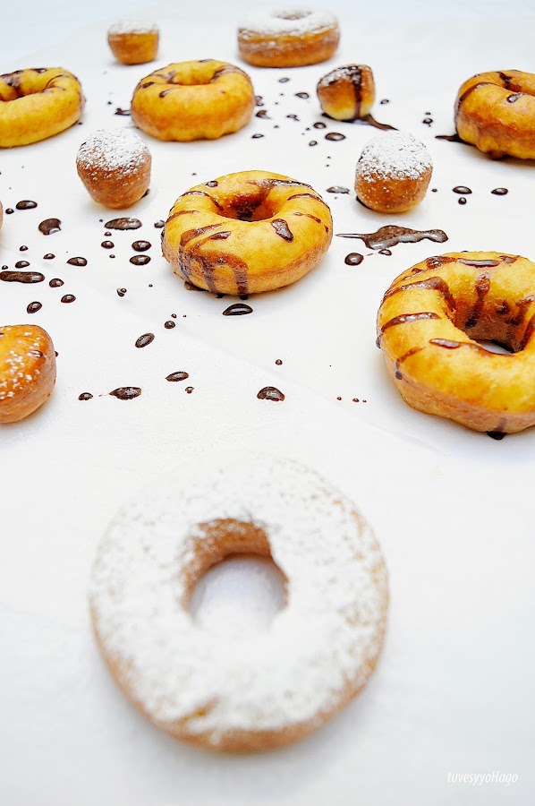 Estos donuts son superesponjosos y están riquísimos. Hay que controlarse porque no puedes comer solo uno. ¡Son una perdición!
