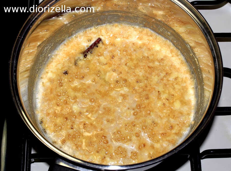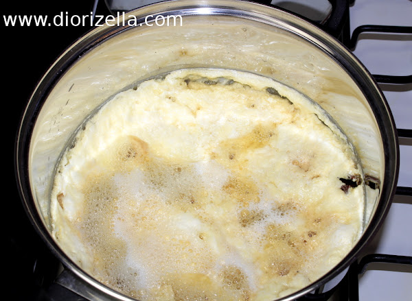 3. Encienda la estufa a fuego medio y deja hervir tapado. Notara que se separa y va a ir reduciéndose la cantidad de leche. www.diorizella.com