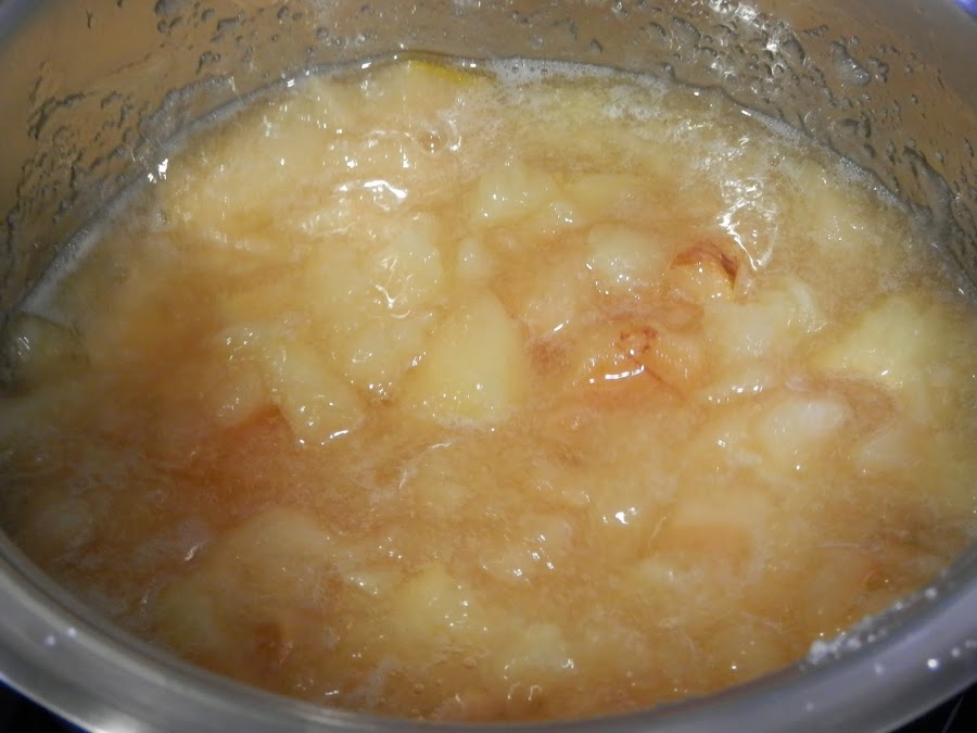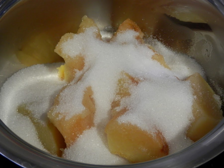 Pesamos ahora la mitad del peso del membrillo y lo ponemos de azúcar.