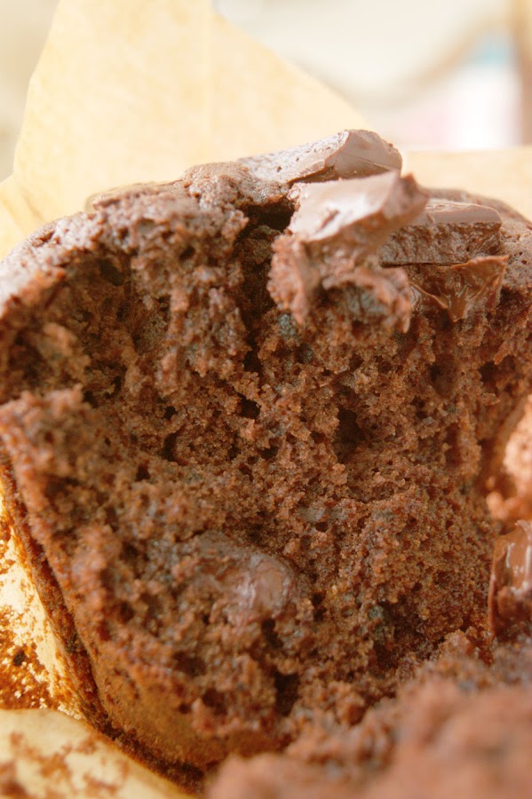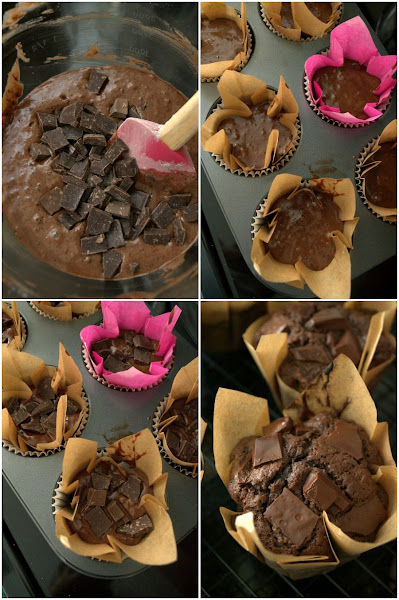Desde que probé en el Starbucks un muffin de chocolate, he estado investigando y experimentando con diferentes recetas, algunas de gente muuuuyyyyyy.... famosa, pero ninguna quedaba bien. Quedaban apelmazados, insulsos,.... como una magdalena, no un muffin, muffin, gordito, esponjoso,....