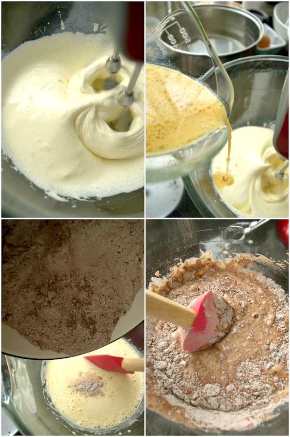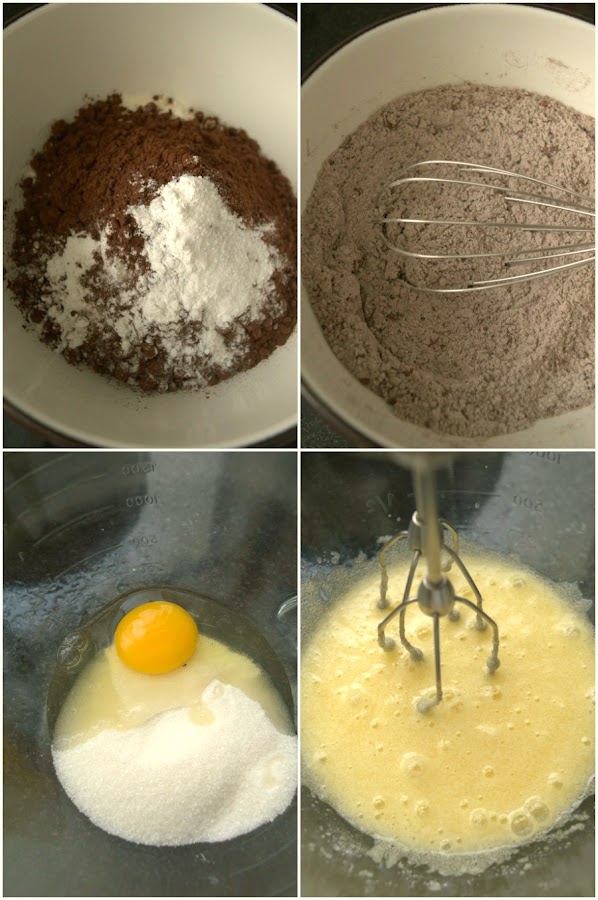 En un bol, mezclar la harina, el cacao, la levadura y la sal. Reservar.