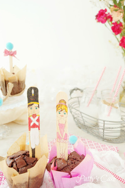 Este mes en nuestro reto de Una galleta, un cuento, nos tocaba hacer el cuento de El soldadito de plomo, elegido por Mi dulce Valentina, nuestra anfitriona. Pensé que no había nada mejor para una fiesta de cuentos que un buen MUFFIN de CHOCOLAAAATTEEEE.... Los niños se volverían locos con ellos y quedarían muy bien con los palitos que había decorado del soldadito y la bailarina.