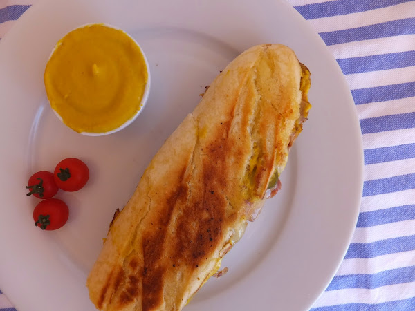 9. En una sandwichera, o plancha cocina hasta que el queso se funda y el exterior esté dorado (que no quemado). En caso de hacerlo en una sartén procura poner algo de peso en la parte superior del sandwich para que se aplane bien.