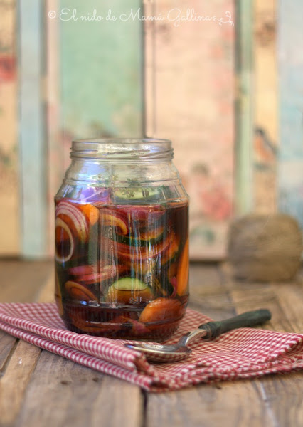 Hay gente que es más de dulce que de salado, pero yo soy de esas que son de ácido, me encantan las naranjas y los kiwis poco maduros, las gominolas de pica-pica, los boquerones en vinagre, el escabeche y , por supuesto, los encurtidos. Esta receta nos permite tener un variadillo de verduras en vinagre, lo que los ingleses llaman ?pickles?, a mano para animar cualquier plato. Tiene varias ventajas, la primera es que son verduras que tenemos a mano y la segunda, que al estar ya cortados en rodajas son ideales para usar directamente en un bocadillo o una tostada. Si sois de los que tenéis siempre pepinillos en el frigoríficos, no dejéis de hacer esta receta, que os encantará.