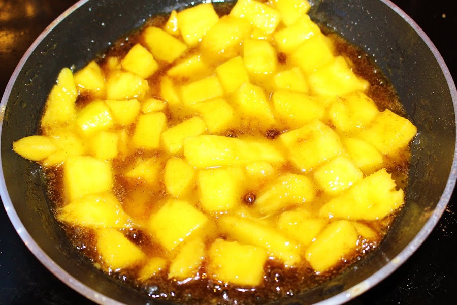 Tip para que quede muy rico, termina la decoración de mango fundido en caramelo pero intenta comerlo al siguiente día y en frío que es, cuando mejor sabe.