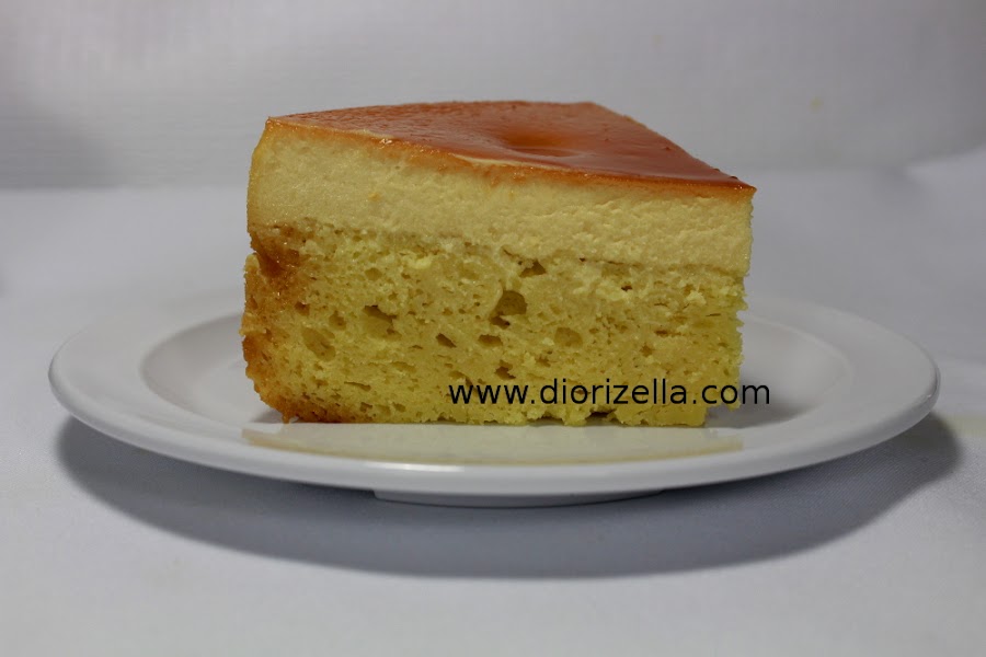6. Coloque la mezcla del bizcocho en el molde, sobre la mezcla del flan.