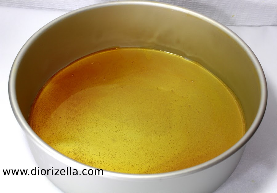 2. Vierta el caramelo en el molde, tratando de cubrir el fondo y los lados.