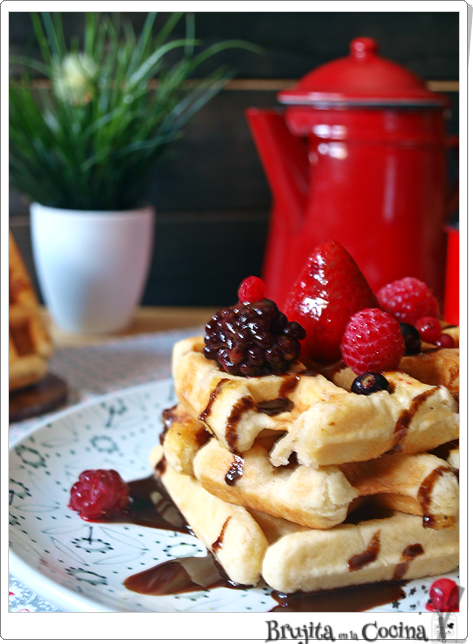Este finde que es largo, ya que lunes y martes tenemos carnaval es buen momento para prepararlos y daros un lujo de desayuno o de merienda. No es difícil de preparar aunque si se necesita una gofrera porque esa es la gracia pero merece mucho la pena.