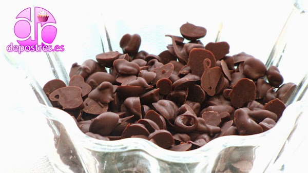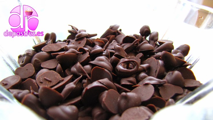 Esta receta o truco, no se muy bien como llamarlo, es muy versátil y lo mismo nos puede servir para hacer unas cookies con chips de chocolate como para hacer un delicioso bizcocho con pepitas de chocolate o para decorar una tarta, helado, etc. Los usos pueden ser ilimitados y es tan fácil que apenas se puede llamar una receta a estas llamadas gotitas, perlitas, chips o chispas de chocolate.