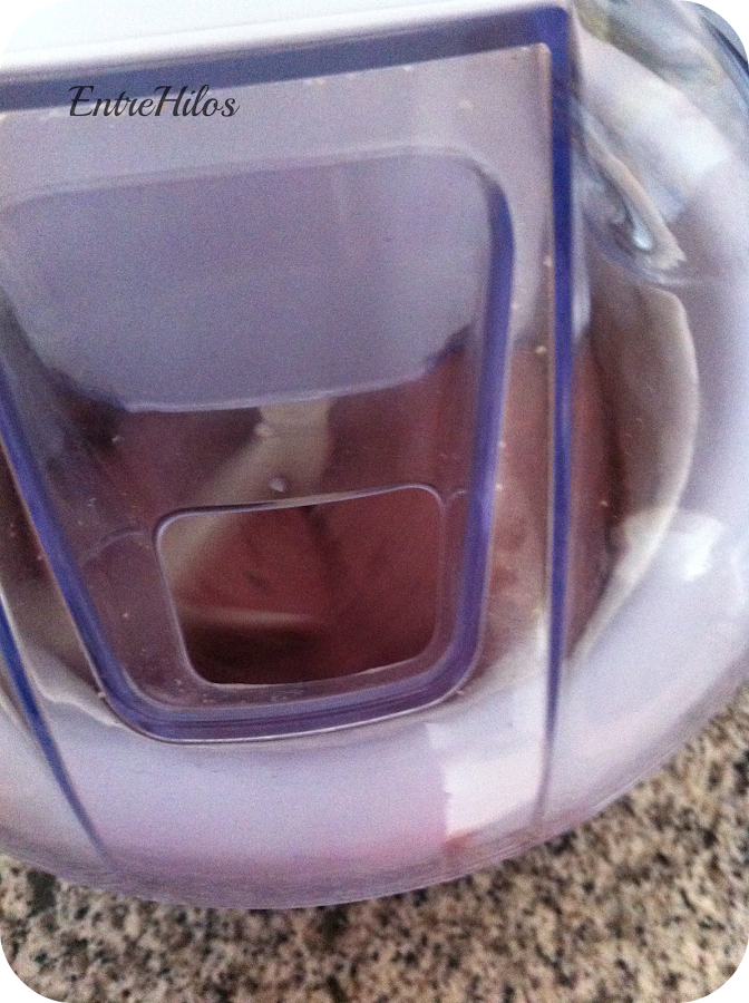 Echamos esta mezcla en la cubeta de la heladera, que habremos tenido en el congelador por lo menos 24h.