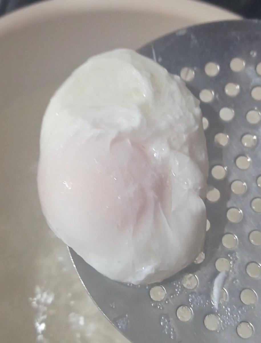 Mi método es poner el huevo sobre un colador, o en un recipientePonemos a hervir el agua agregamos el vinagre y antes que hierva hacemos un remolino con una cuchara o tenedor y tiramos el huevo y dejamos cocinar 3 minutos , hasta que la clara esté blanca