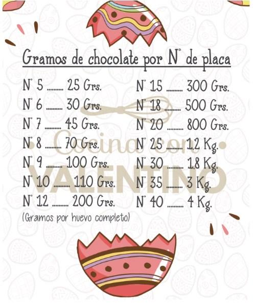 Con este tutorial de “Cocina con Valentino” vas a poder elaborar los más lindos, originales y económicos huevos para tu familia. En primer lugar quiero que veas las cantidades de chocolate aproximado que necesitarás para cada huevo según el molde que tengas o compres.