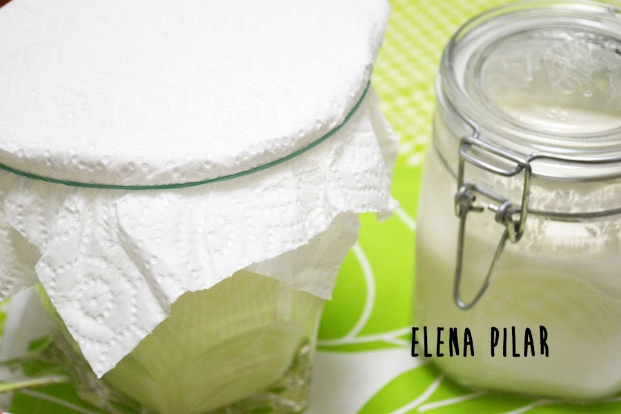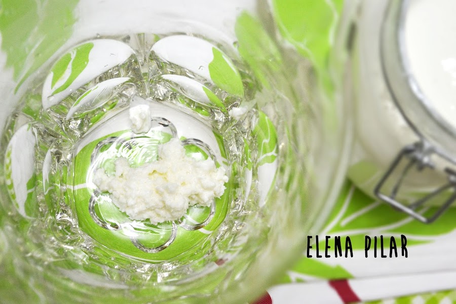 Y, de nuevo, pasamos nuestros gránulos a la jarra de cristal y repetimos el mismo procedimiento que os he explicado más arriba: vertemos la leche, tapamos con el papel de cocina y dejamos fermentar.
