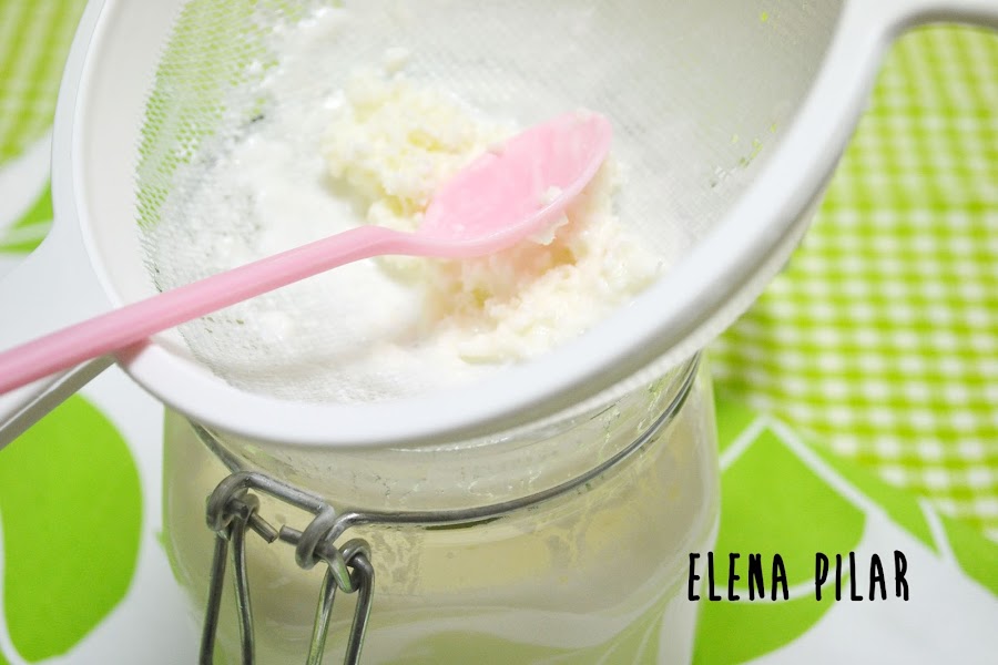 Hoy no os traigo una receta como tal, sino un paso a paso para elaborar en casa litros y litros de kéfir de leche. Mi madre y yo nos hemos vuelto adictas a este producto, lo tomamos a diario, cada mañana, y a veces repetimos por la noche. Y es que me gusta, me sienta fenomenal y, no sé si será sugestión, hasta he dejado de padecer afecciones digestivas.