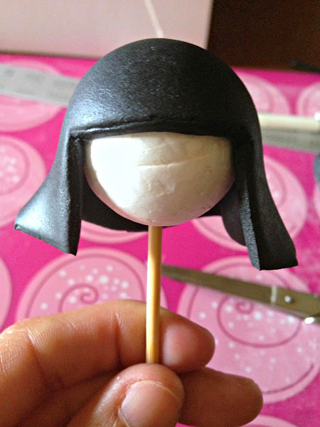 Con un trocito de fondant rojo hacemos los labios.