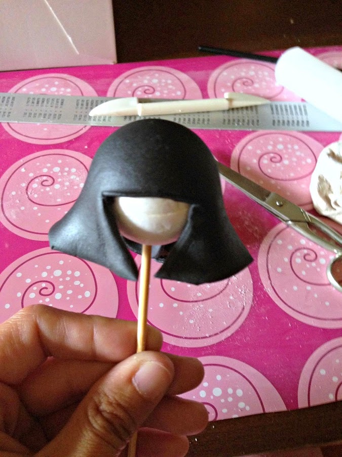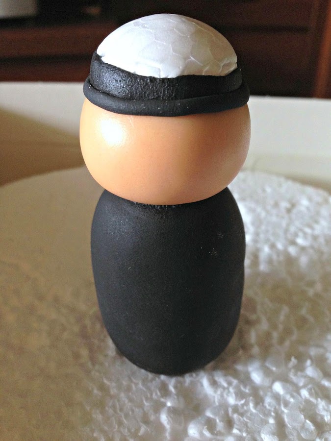 Ahora cogemos un trozo de fondant color carne con cmc, hacemos una bola y lo ponemos encima del cuerpo.