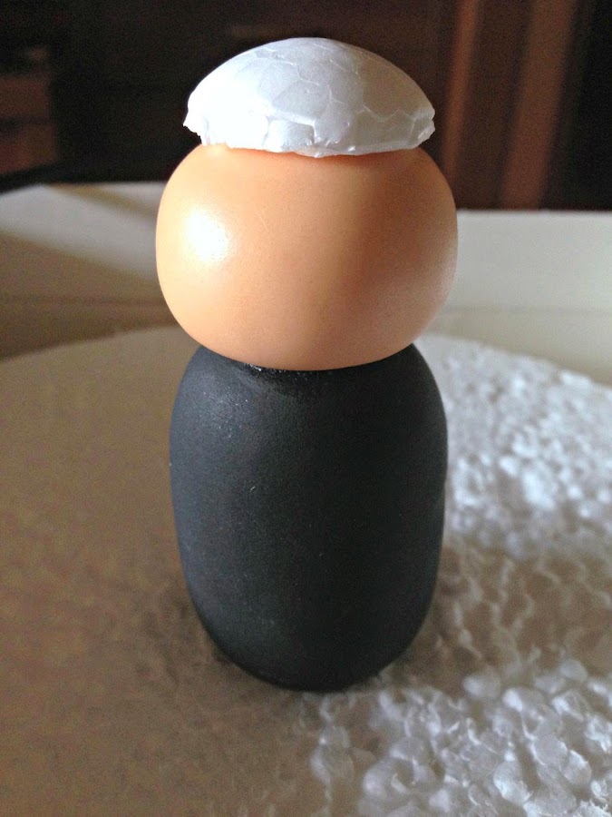 Y lo colocamos encima de la bola de corcho.