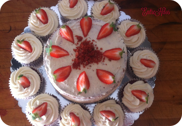 Lo metemos al horno. El tiempo, eso ya sabéis que depende de vuestro horno y del tamaño del molde. En mi caso, la tarta en 30 minutos estaba hecho, y los cupcakes en unos 20-25.