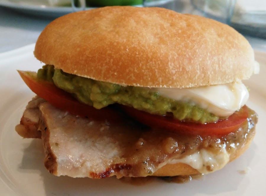 Necesitas: Mayonesa, Palta (Aguacate) molida, Mostaza, Tomate en rodajas. Poner la mayonesa en el pan, luego la carne, palta, tomate, mayonesa y mostaza. Tapar y Servir.