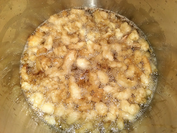 Al cabo de mucho tiempo (1 hora bien larga), ya se obtiene este resultado, cuando los griñispos están bien rubios (sin llegar a quemarse) ya es el momento de sacarlos