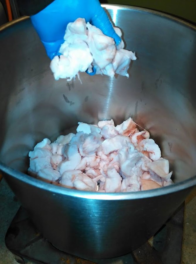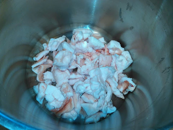 Antiguamente cuando no había aceite, o más bien dinero para comprarla... se utilizaba esta grasa para cocinar, además de para conservar el embutido y para hacer jabón, creo que ya os comenté que mi padre siempre hacía, un día buscaré las proporciones (a saber donde las tengo apuntadas) y a ver si me pongo al lío y hago el jabón