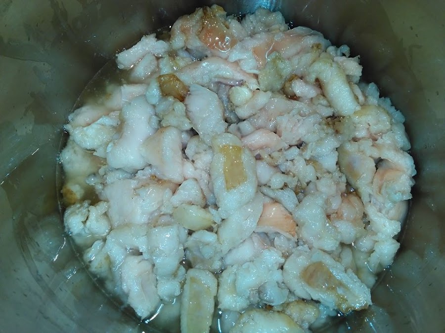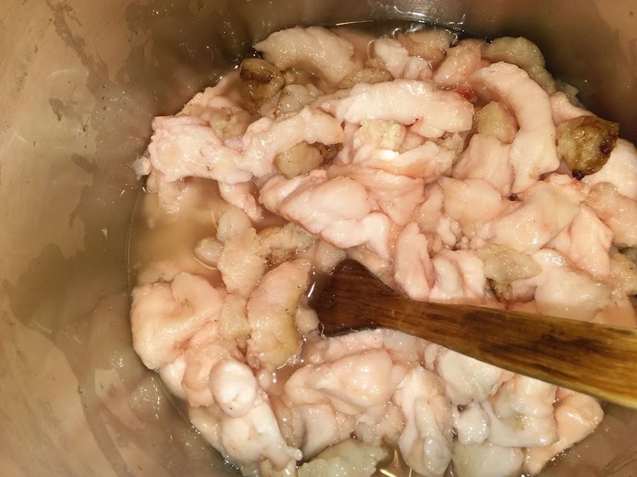 Y de vez en cuando removiendo, poco a poco con el calor la grasa va derritiendo