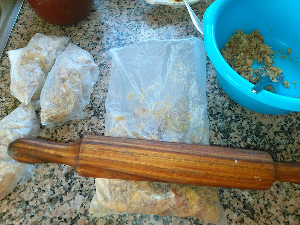 O también los voy metiendo en bolsas y con ayuda del rodillo los deshago