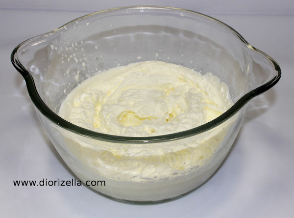 1: Bata la crema con un batidor eléctrico hasta que espese y forme picos suaves.