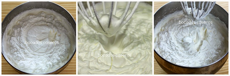 Batimos la nata (crema de leche) hasta que obtengamos nata montada (crema de leche)...
