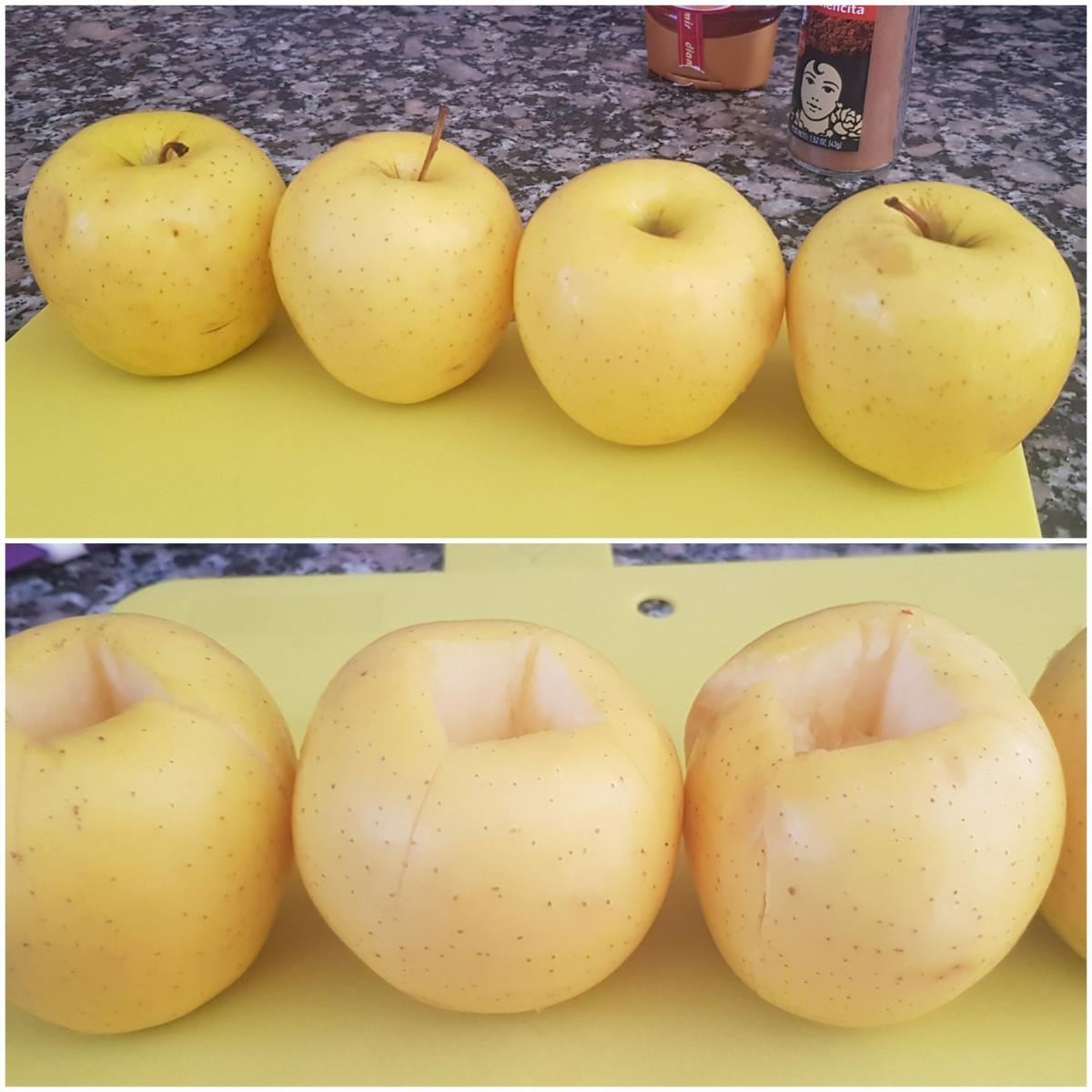 Tiempo necesario: 15 minutos.Descorazar las manzanas Lo primero de todo, lavaremos muy bien las manzanas y las descorazamos, y las vamos dejando en una bandeja apta para microondas.