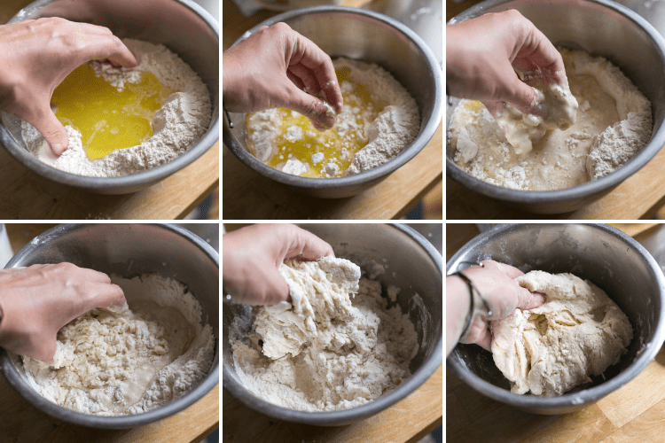 Poco a poco comenzamos a remover los ingredientes con las puntas de los dedos (como haciendo pellizcos) desde el centro. Lentamente comenzamos a revolver todo los ingredientes usando los dedos.