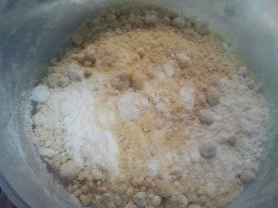 1. El primer paso es mezclar el azúcar glasé con la harina de almendra. Es muy importante que sea harina de almendra. La almendra molida no tiene la misma textura y no queda igual. Removemos bien la mezcla seca.