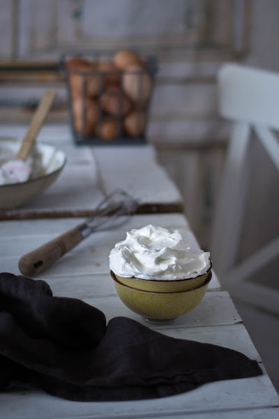 Solo nos valdría si lo montamos, con mucho trabajo y la ayuda de cremor tártaro , ponemos en en la tarta y servimos, ya que no aguantará el paso del tiempo y no se monta lo suficientemente firme como para escudillarlo con boquilla.