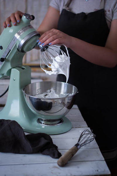 Seguimos batiendo a velocidad alta, hasta que el merengue enfríe y haga picos firmes.