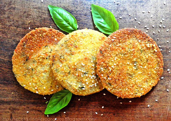 Ya tenemos nuestras deliciosas, exquisitas y perfectas milanesas de soja con arroz rellenas de queso y albahaca!!