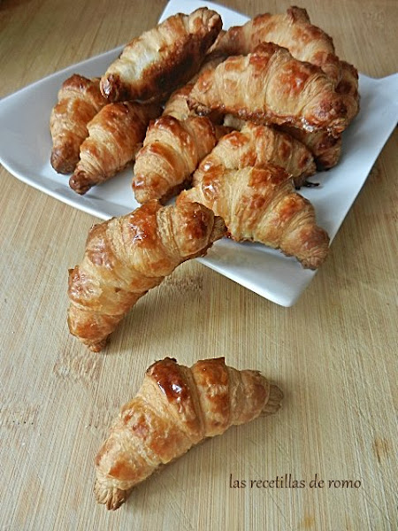 No sé que tiene el hojaldre que hagas lo que hagas con él siempre triunfas, en esta ocasión han sido croissants pero con las rosquillas de hojaldre "Cristaleiro" o con las clásicas palmeritas de toda la vida siempre son un exito y desaparecen de la bandeja en menos de lo que canta un gallo.