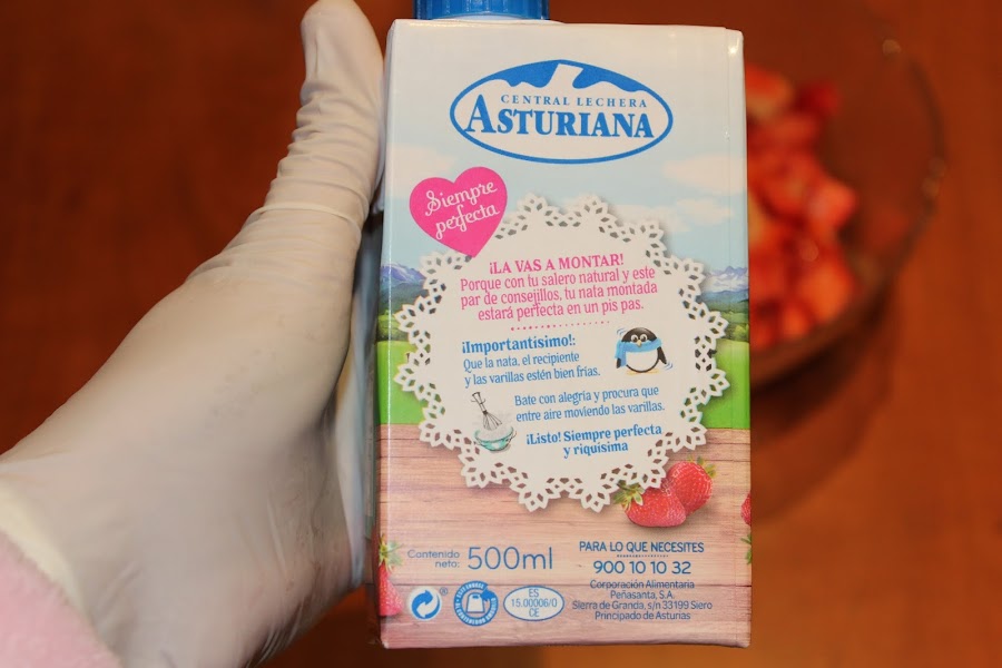 Lo primero que tenemos que tener presente es que la nata (crema de leche) que compremos sea de muy buena calidad, con un mínimo de materia grasa del 35,1% de materia grasa, para que la nata (crema de leche) quede bien montada. También da muy buen resultado, la nata (crema de leche) vegetal.
