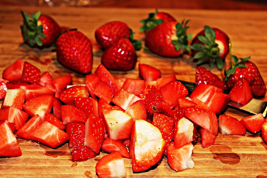 Elige las fresas bien frescas, lava debajo del grifo y retira el tallo. Corta en daditos o a la mitad, lo que prefieras.