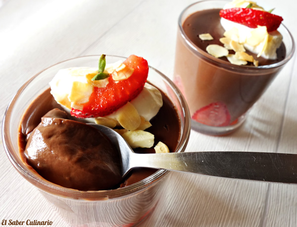 5. Servimos las natillas de chocolate en unos vasitos donde habremos colocado unas fresas cortadas a la mitad. Dejamos reposar en la nevera durante un par de horas y ya podremos disfrutar de este postre.